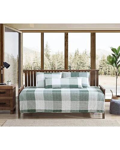 - Design details: this daybed is lightweight with a casual, relaxed feel; perfect for year-round use,quilting fill: 80% cotton & 20% polyester; blended to create a durable quilt,included shams feature 7″ european cap closure; pillow cover features zipper closure, eddie bauer’s best-selling boulder plaid in hues of evergreen and white; daybed reverses to solid white; shams and pillow cover self-reverse