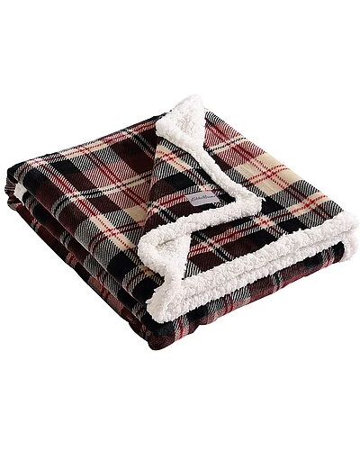 - Design details: super soft and cozy; lightweight and easily packable; faux shearling reverse for added warmth, features signature eddie bauer logo patch, standard 100 by oeko-tex certified, dusty red, beige & black printed plush fleece; reverses to black faux shearling popcorn fleece