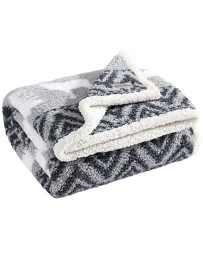 - Design details: super soft and cozy; faux shearling provides superior warmth without the added weight, features signature eddie bauer logo patch, standard 100 by oeko-tex certified, a whimsical take on an eddie bauer fair isle print featuring woodland creatures and trees in shades of grey and white; reverses to solid ivory faux shearling popcorn fleece